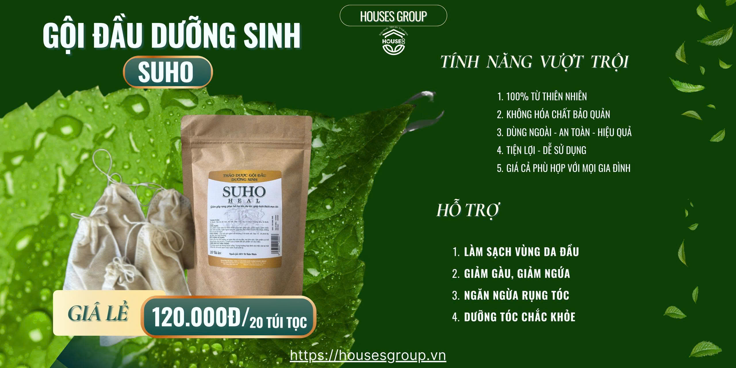 THẢO DƯỢC GỘI ĐẦU DƯỠNG SINH 20 GÓI (Túi lọc)